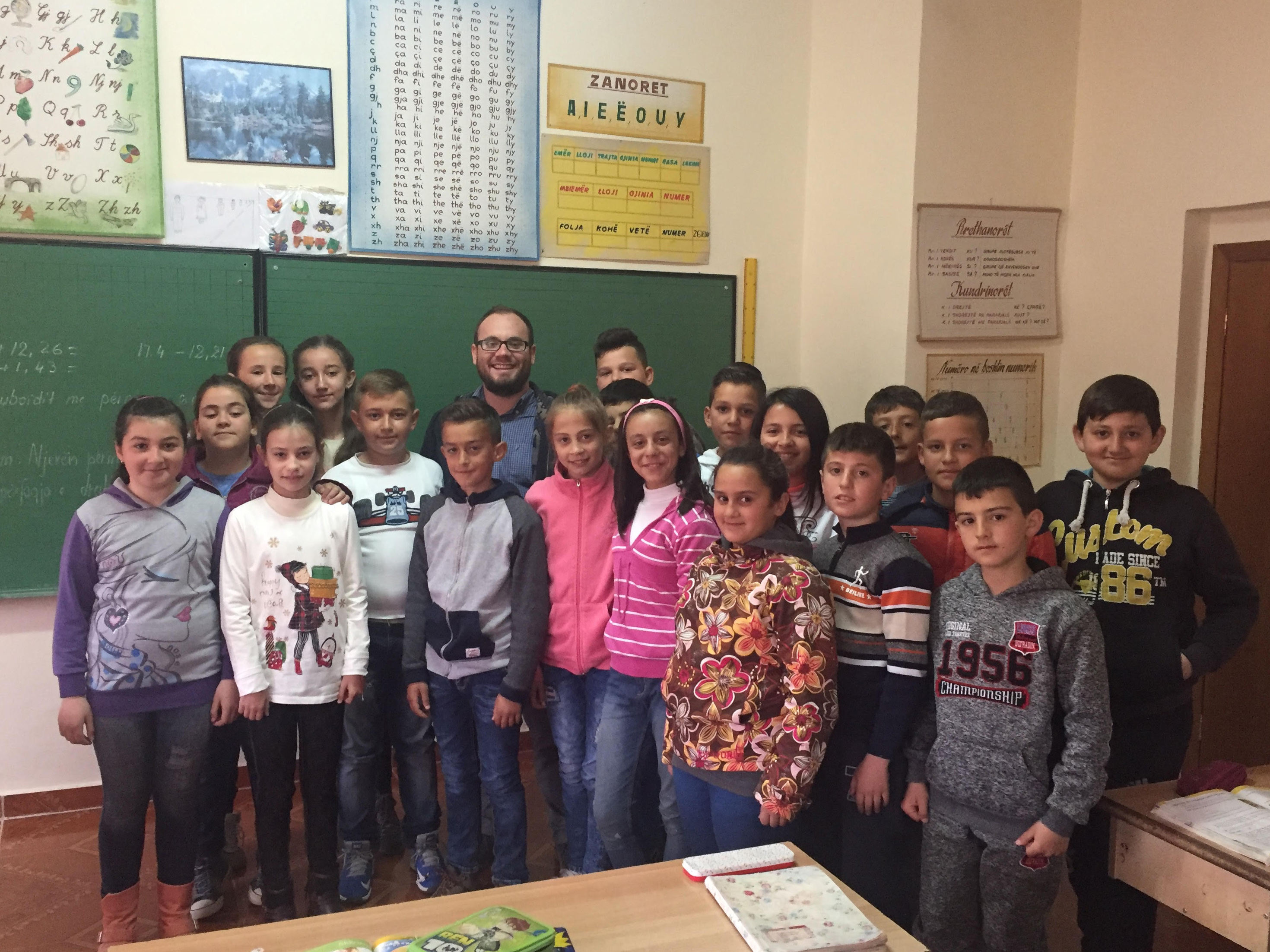 Fulbright finalist -- Jesse Corfield, a 2014 SUNY Oswego graduate, is among a select group of U.S. citizens chosen to teach abroad in the upcoming academic year through the Fulbright U.S. Student Program. Starting in February, he plans to teach English at a university in Brazil under the prestigious program. He is shown with some of his students during a recent Peace Corps teaching assignment in Albania.