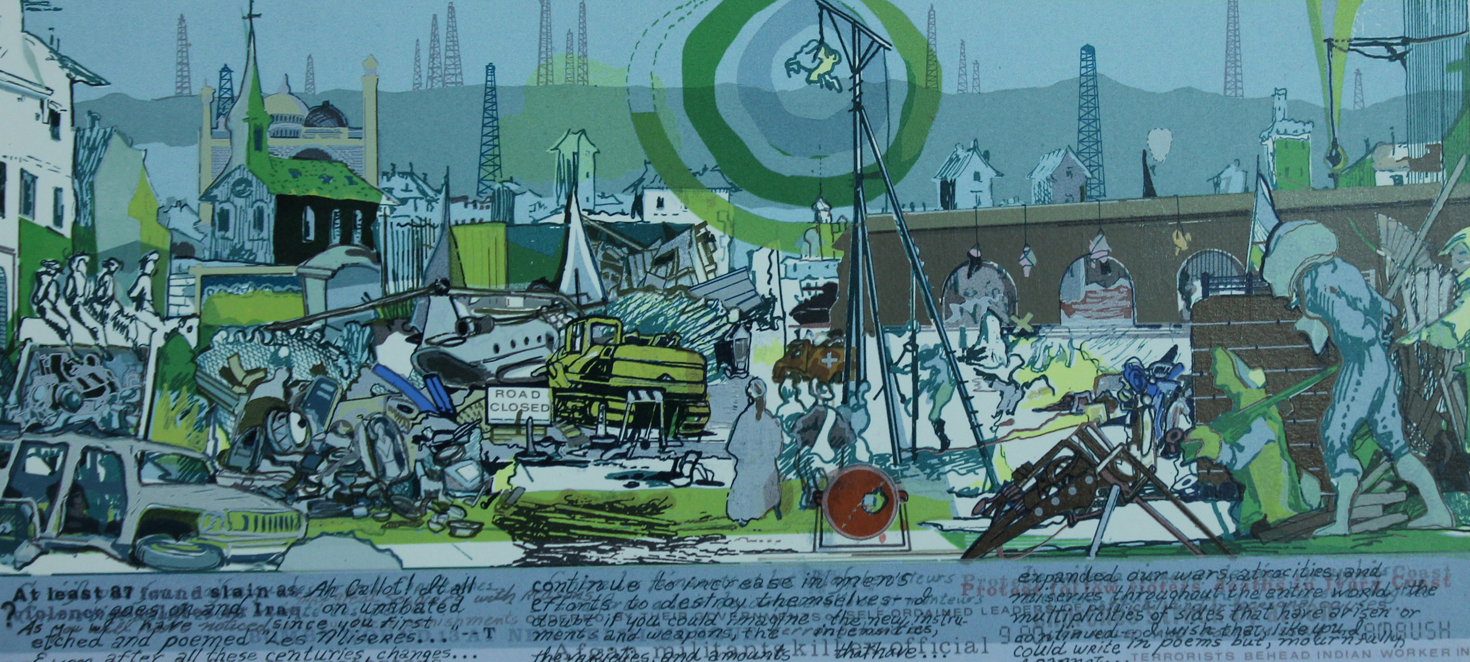 Seawell, who died in August, came to Oswego in 1963 to establish the college’s fine arts printmaking program. Particularly recognized as one of the first practitioners of the collagraph medium—a collage which begins with materials glued to a printing plate—his work is defined by a variety of noteworthy series including Family Album, States and Provinces, The Streets, Empty Centers, Variations on Themes of Jacques Callot, the Art Doors project, and a series of images of stock exchanges and trading floors commissioned by Geldermann Inc. of Chicago.