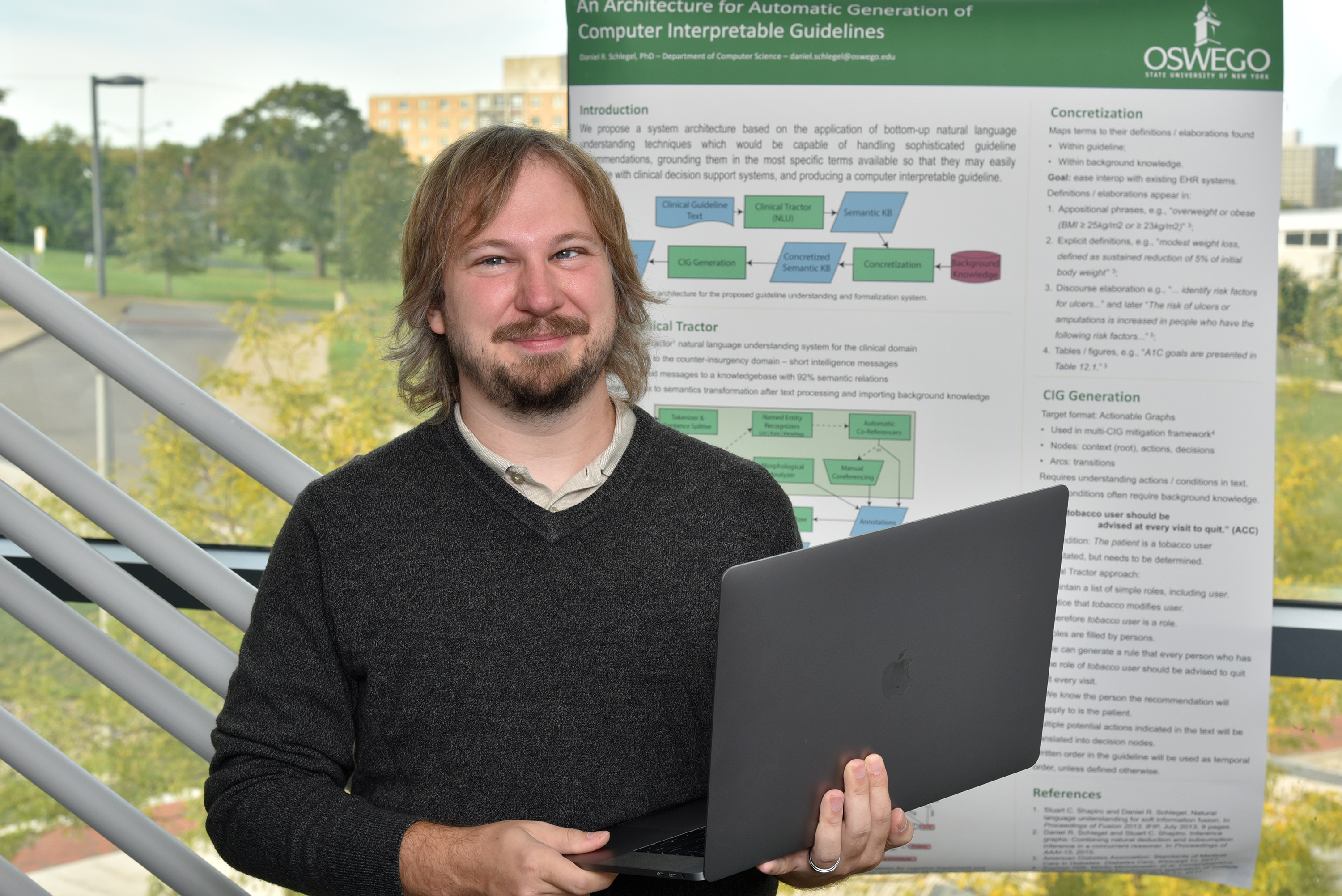 Thanks to a grant from the National Institutes of Health, SUNY Oswego computer science faculty member Daniel Schlegel plans to apply artificial intelligence (AI) to an immensely complex problem: the automated interpretation of guidelines for medical treatment of diseases.