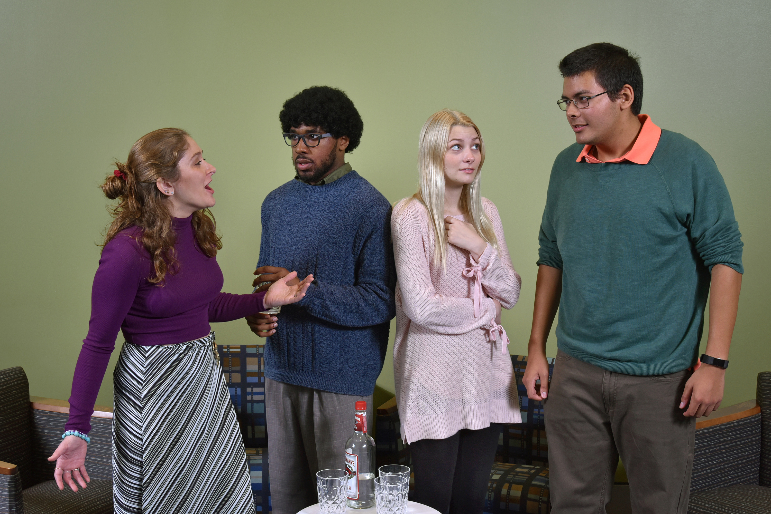 "The Shape of Things," a four-character Neil LaBute play about making personal changes to satisfy one's partner in a relationship, will open at 7:30 p.m. Wednesday (Nov. 7) with a preview performance at Waterman Theatre in SUNY Oswego's Tyler Hall. The play will run Nov. 8 to 11, with matinees the last two of those days. Student actors serving as understudies (from left) Michaela Buckley (as Evelyn), Trey Thomas (Adam), Mackenzie VanHorn (Jenny) and Philip Jones (Phillip) prepare as avidly as the leads for the theatre department's fall production, and will all get to take the stage during the run. Tickets for the preview are $5 (free for SUNY Oswego students); tickets during the run are $15 ($7 for SUNY Oswego students), available through box offices, tickets.oswego.edu or 315-312-3073.
