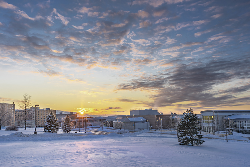 A spectacular sunset painted the snow-covered landscape of the campus on Feb. 8.