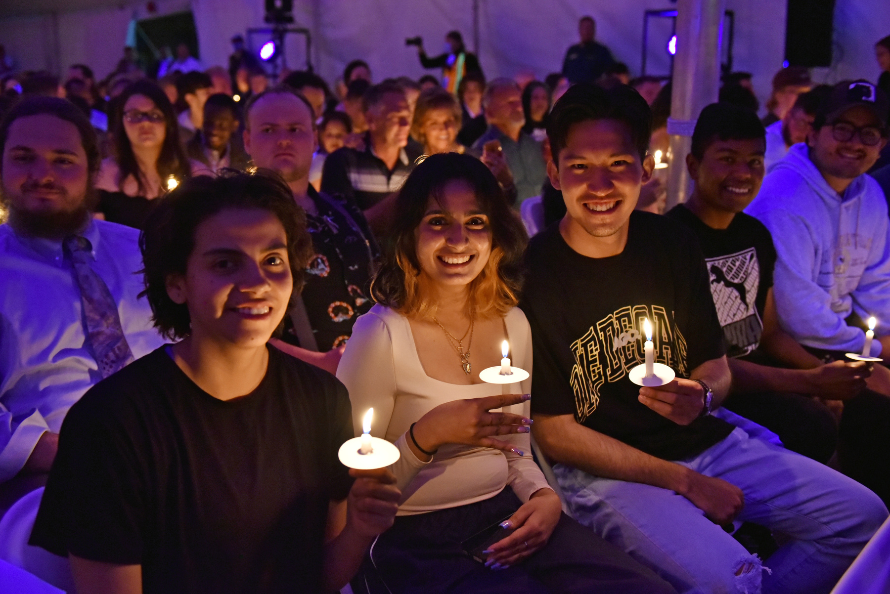 Graduating seniors, families and guests hold up their candles to celebrate the passing of knowledge during the Torchlight Ceremony.