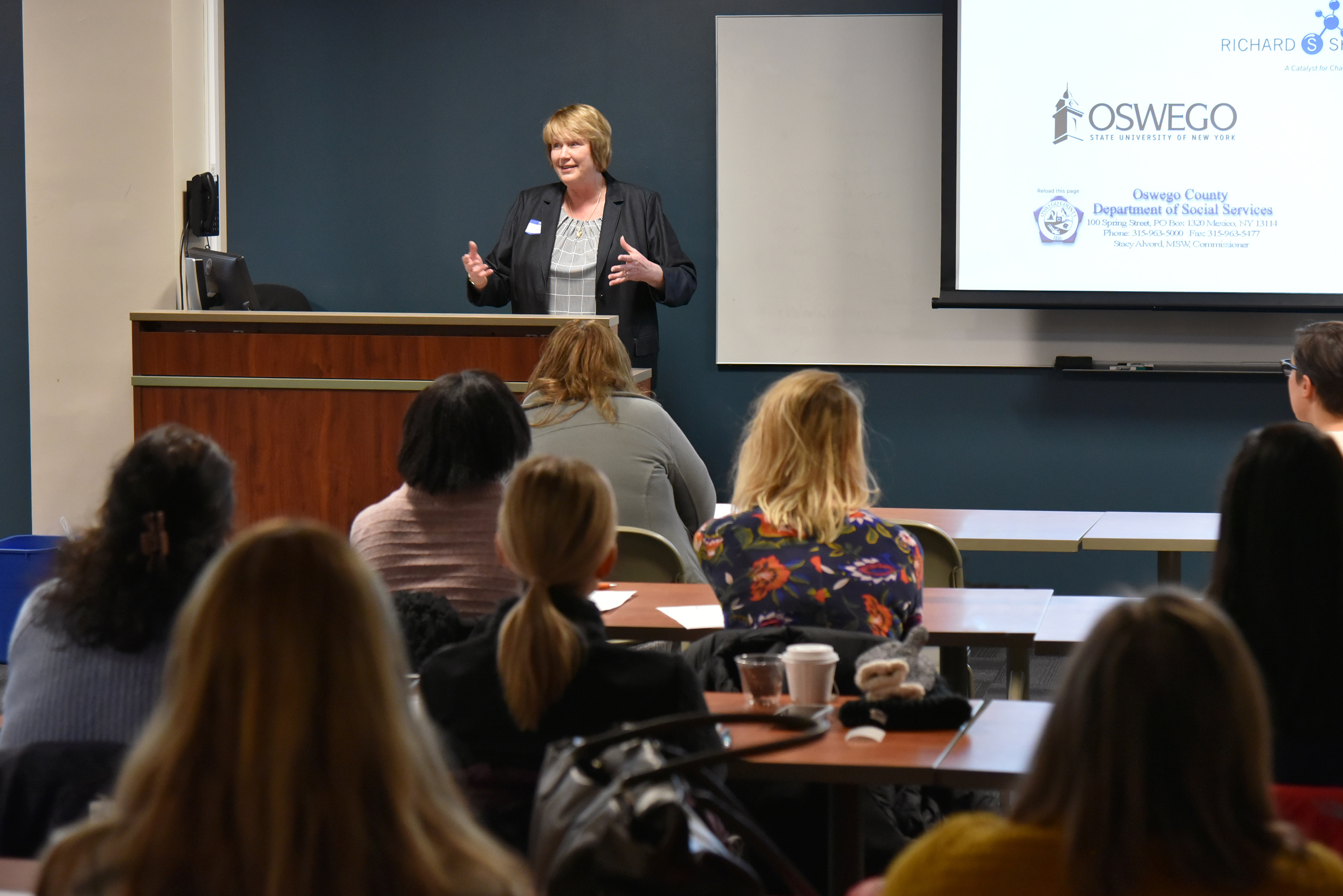 Stacy Alvord, DSS commissioner in Oswego County, spoke at the kickoff session in support of the growing Circle of Security program as one of the vital keys to early intervention with parents of young children to break the cycle of generation-to-generation abuse and neglect.