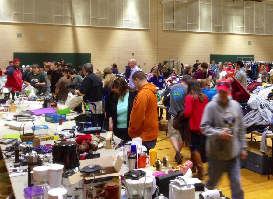 Organizers said they have collected as much as seven tons of items for previous sales, with volunteers sorting the goods and putting them on tables arrayed throughout Swetman Gym.