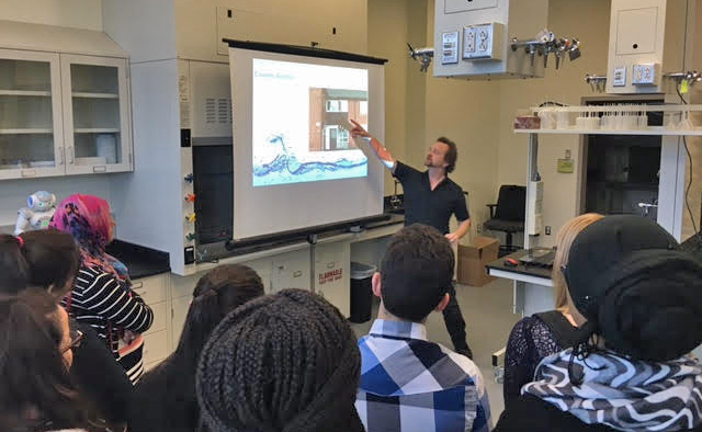 SUNY Oswego faculty and staff were on hand to co-host the informational event for some 200 students interested in careers that are rooted in science, technology, engineering and math.