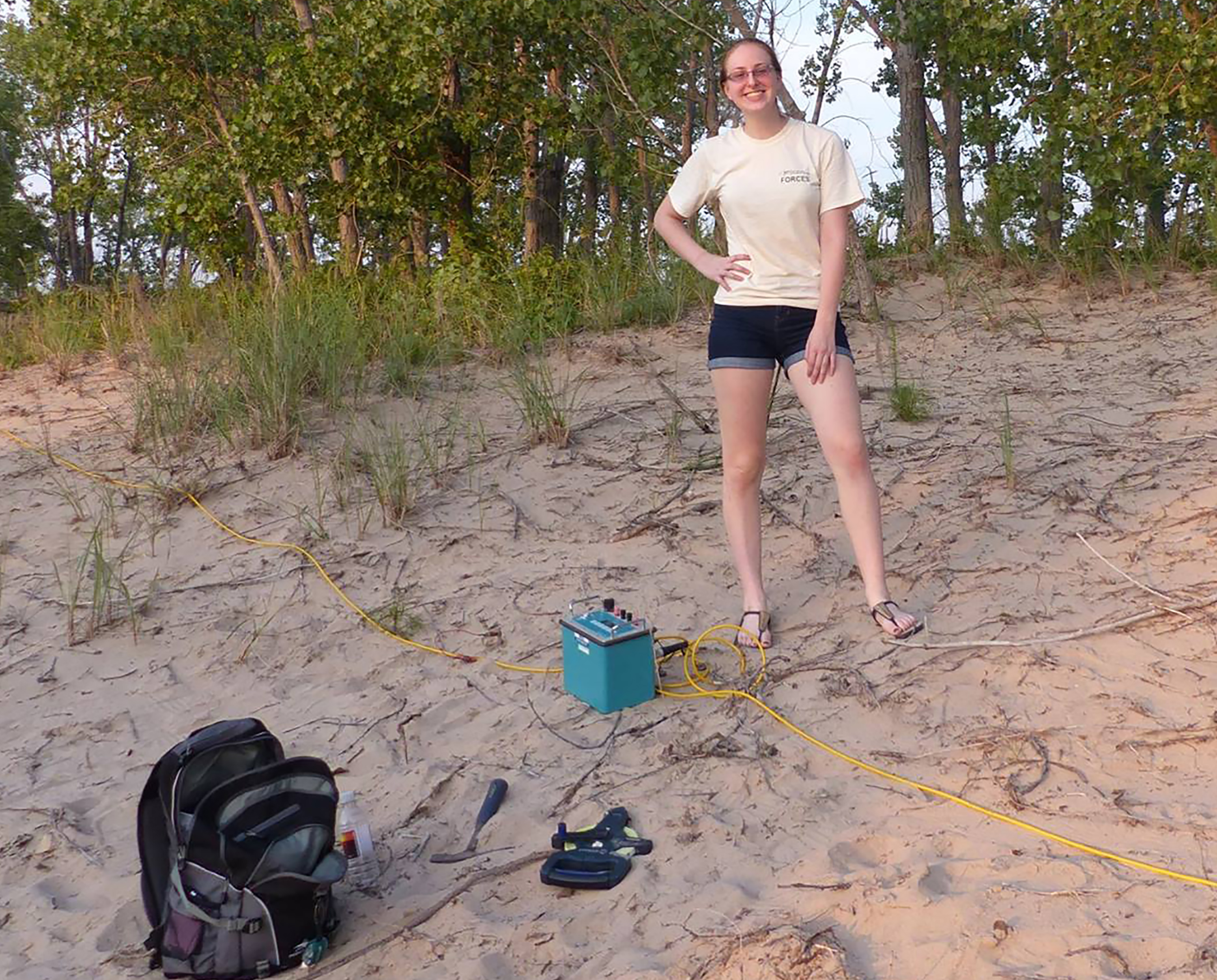 The devastation SUNY Oswego geology major Kimberly Smith saw as a volunteer last summer helping with cleanup at Sandy Island State Park drove her to study the impact of high water levels on wildlife habitat in the environmentally unique dunes of eastern Lake Ontario.
