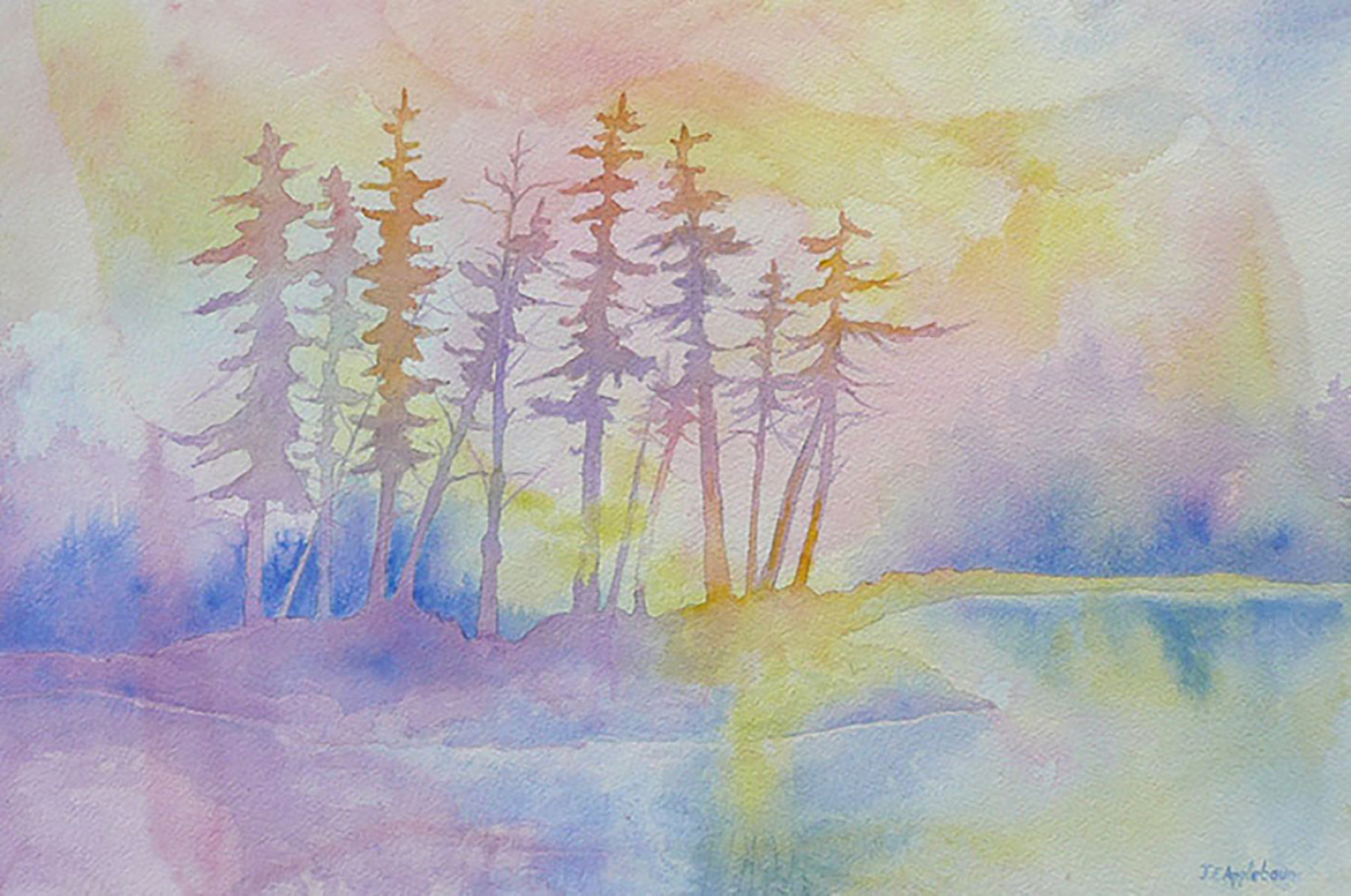 “I am intrigued by the drama of light and moisture mingling in the air creating those silvery spaces where land, sky and water connect, resulting in portrayal of atmosphere rather than of a specific scene,” Applebaum wrote. “The unique characteristics and challenges of each medium (watercolor, acrylic and pastel) influence the final look of each painting.”