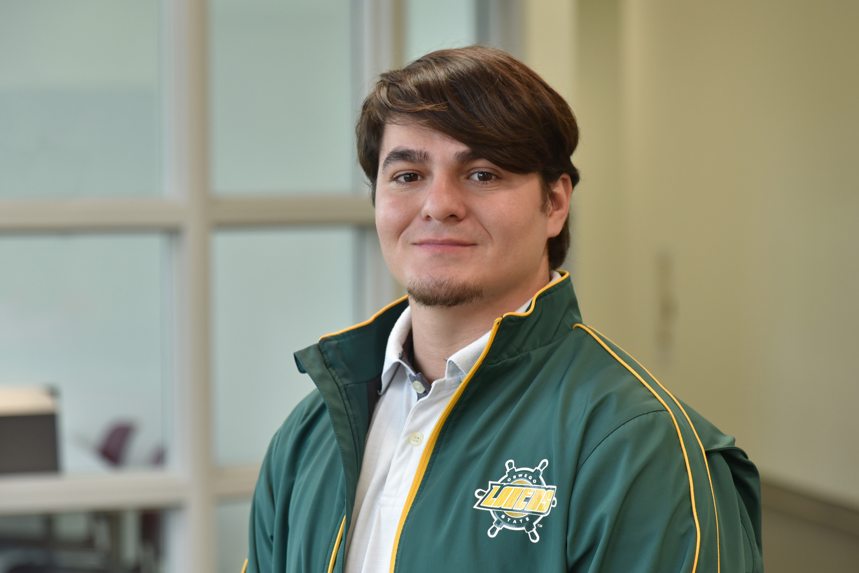 A native of El Salvador, Figuero seizes the athletic, social, employment and volunteer opportunities that come his way at the college as he studies full time in technical education, with a minor in Spanish. He played as a member of Scrambled Legs, a title-winning intramural soccer team; served as secretary last semester of the college's Nontraditional Student Organization; has been a group leader of student workers at Lakeside Dining Hall; shared his experience with other students who take some or all online classes (Figuero takes two to three a semester); and volunteered to spend his 2019 spring break helping out in hurricane-ravaged Puerto Rico.