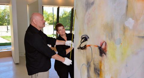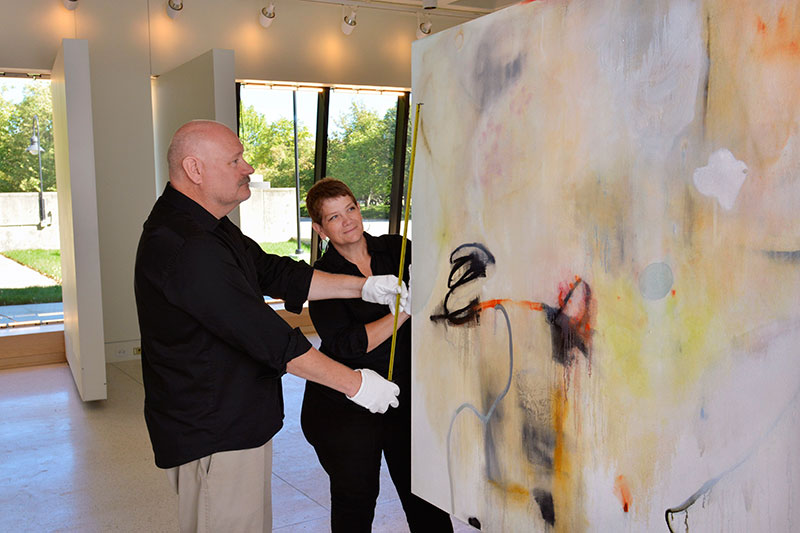 While the exhibition’s title nods to Tyler Art Gallery’s 48-year history, the idea of a fresh start helps set an inviting tone for community enjoyment and involvement, as do the gallery’s pivoting main wall and moveable, multipurpose window coverings, said Cynthia Clabough, chair of the college’s art department.