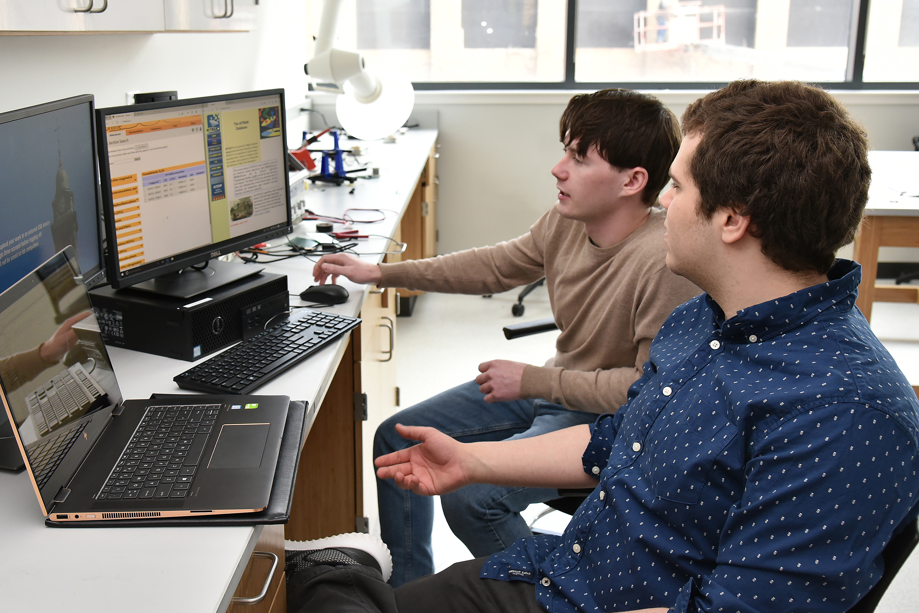 Software engineering major Joshua Karns of Rochester and computer science major Wyatt Matt of Parish -- both in only their second year at SUNY Oswego, though with junior-level course credits -- will spend May 16 to Aug. 24 advancing the graphical user interface for the HITRAN spectroscopic database, developed at the Atomic and Molecular Physics Division of the Harvard-Smithsonian Center for Astrophysics, under the direction of Dr. Iouli E. Gordon.