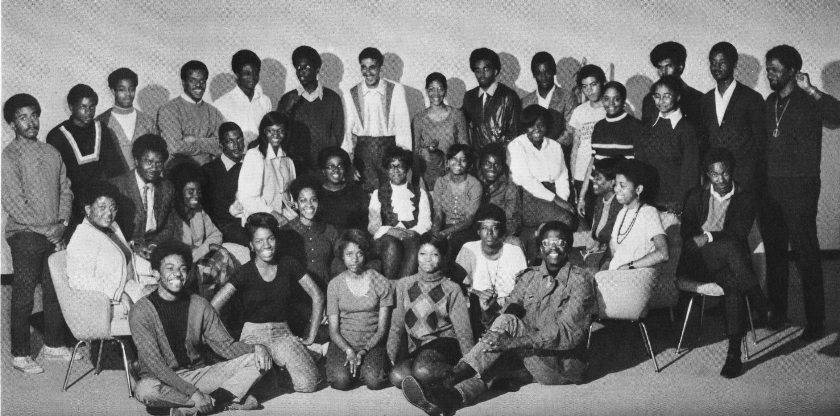Pioneering members -- Black Student Union members gather in an early photo. The student organization, founded in 1968, has thrived at SUNY Oswego for five decades.