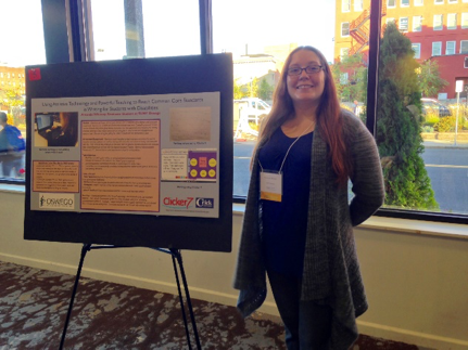 Her presentation was titled, Using Assistive Technology and Powerful Teaching to Reach Common Core Standards in Writing for Students with Disabilities. Amanda presented on a student in her student teaching placement whom she taught how to use the assistive technology program called Clicker7. She presented her student using the SETTT Framework (student, environment/background, tasks/objectives, tools, teaching). Her poster included a before writing sample, and an after writing sample, to show just how much Clicker7 helped my student succeed in writing. She also included the common core ELA standards that aligned with the writing lessons.