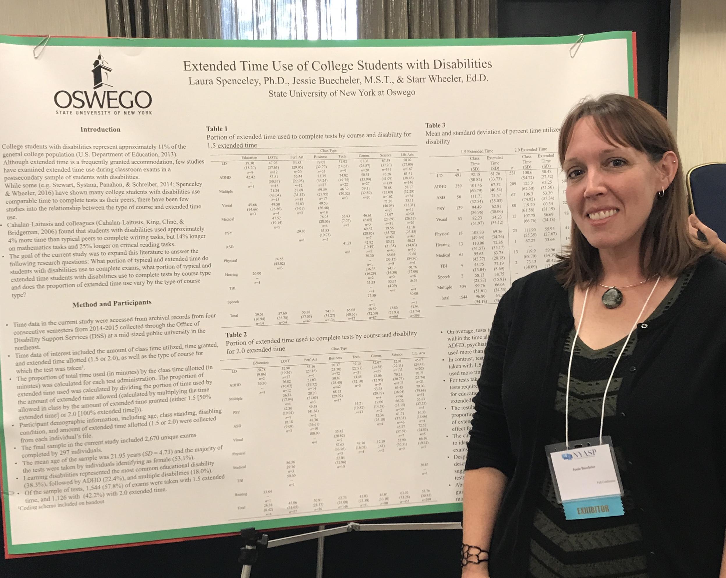 This October, I attended the New York Association of School Psychologists annual conference in White Plains, NY. Attendees of the NYASP conference are typically associated with a school or college, and presentation topics are usually related to current events or concerns in the field. Credit-earning sessions are also offered to help individuals retain their credentials. I participated in the poster session, along with my advisor, to present the findings of our own study, Extended Time Use of College Students with Disabilities.