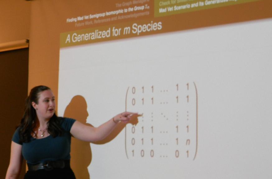 Julia Martin, Class of 2016, participated in several mathematics and statistics research projects over the course of her time at SUNY Oswego. One project, titled "Bats, Ecology, and Public Health" led Julia to attend the national Mathematical Association of America conference, MathFest 2015, in Washington, DC. This project required that Julia work with the Department of Environmental Conservation and the New York State Department of Health Rabies Laboratory to gather data on rabies among animal populations in New York.